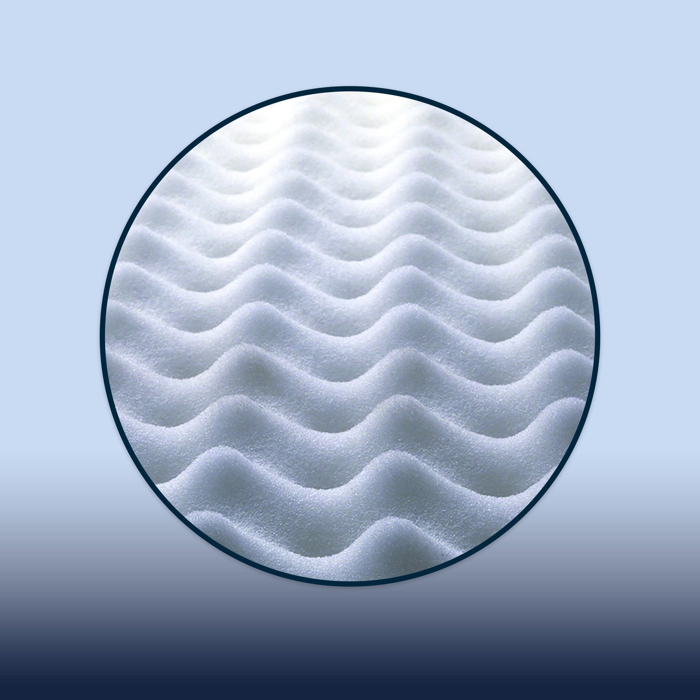 Soft foam provides cushioning and promotes airflow through its unique, gently rippling design