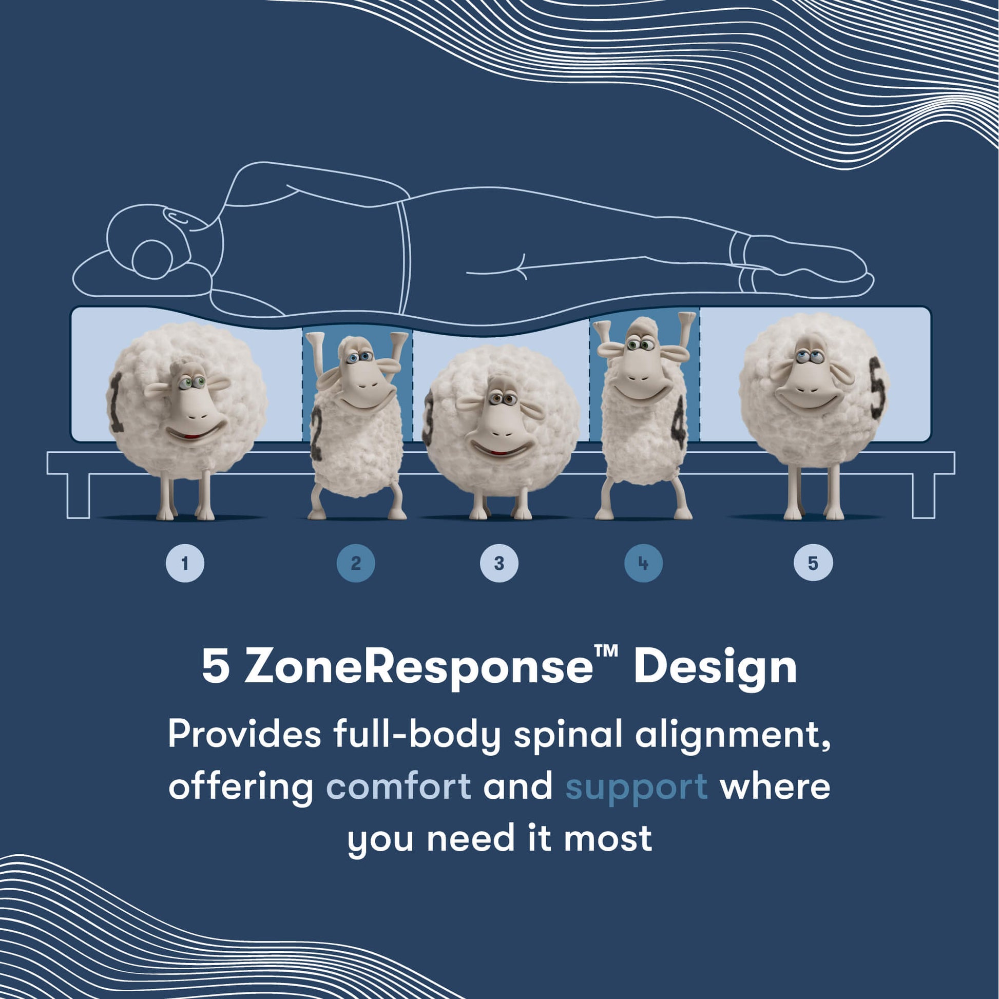 Designed with full body support, it features a 5-zoned response system for head-to-toe comfort and support.